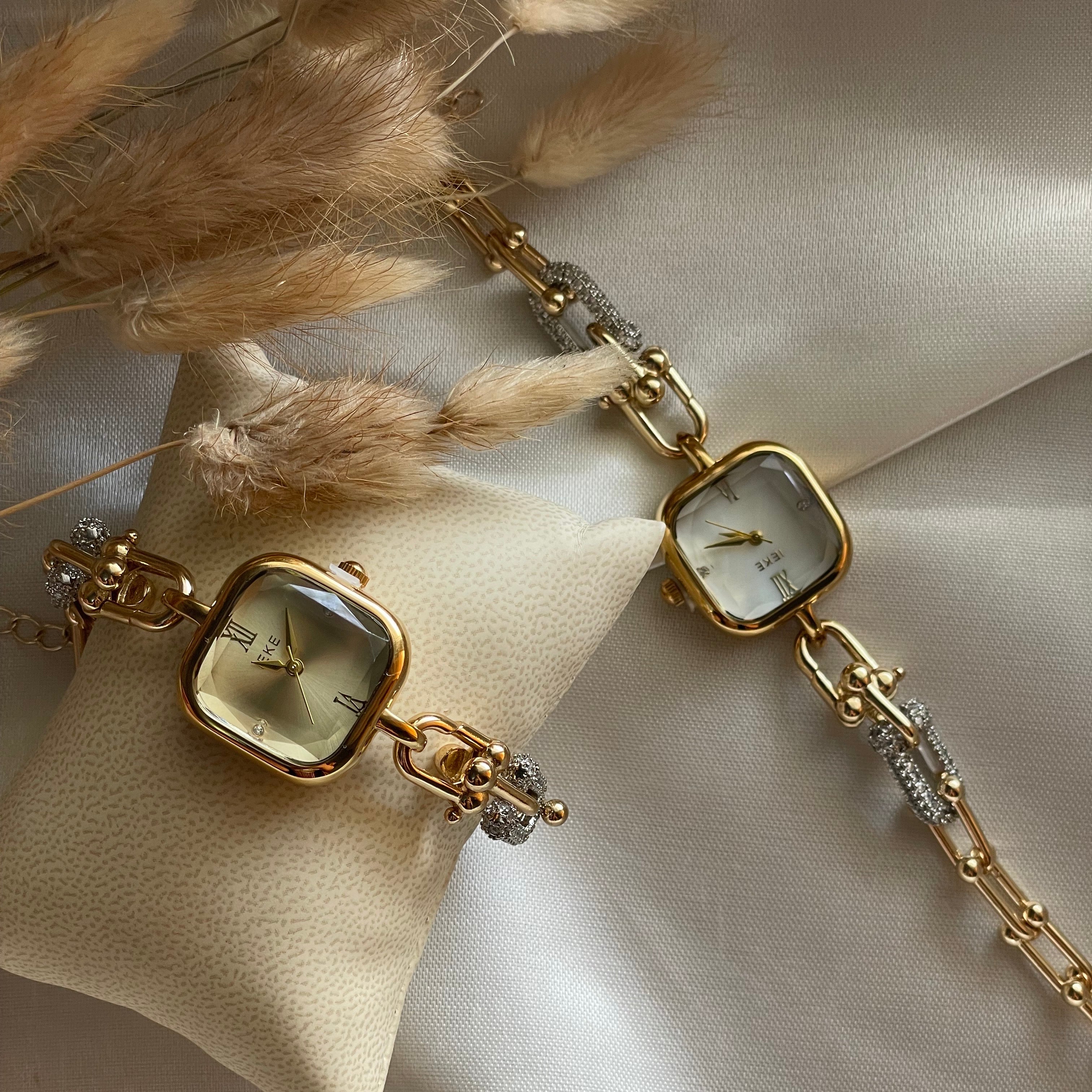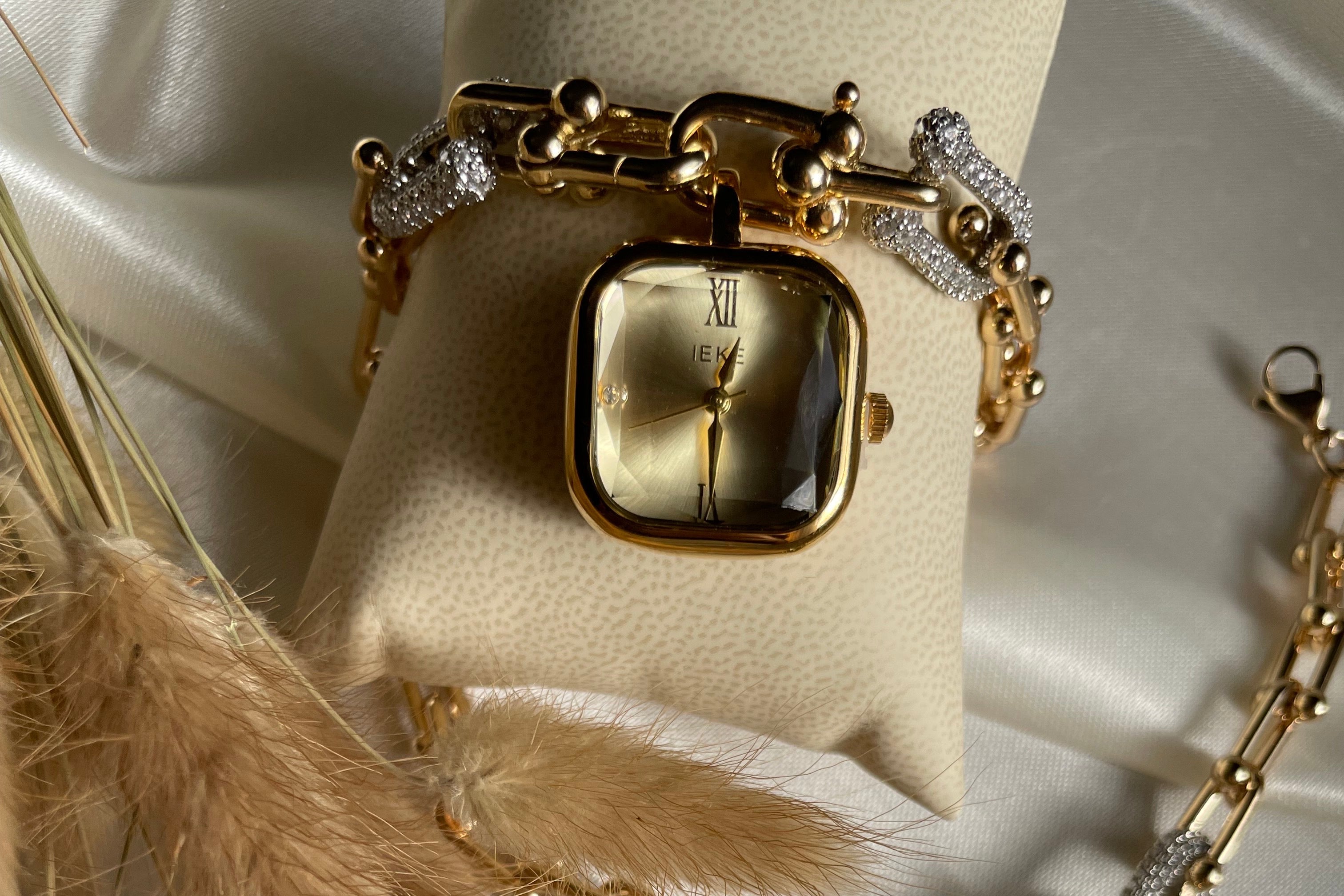 Notre nouvelle collection de montres pour femmes allie raffinement et style audacieux. Avec leurs finitions dorées, détails précieux et bracelets élégants, chaque modèle est conçu comme un bijou pour sublimer toutes vos tenues. Une touche de luxe discret à votre poignet. 💫